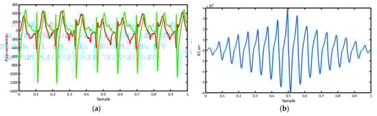Cross-correlation is one of the useful tools to describe the relations between various leads of the ECG signal. Figure 4 shows the cross-correlation output between the approximation signal of the leads I and II of the ECG signals. As illustrated, there is a regular cross-correlation between these two leads due to the high similarity between signals of various leads of the ECG signal, as stated in the previous sections.