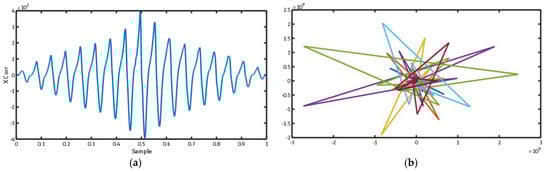 To prepare input data of the CNN tree, we calculated the ECG trajectory in this section. The output of the spectrogram display of an ECG signal is created as complex numbers. To draw the trajectory of this spectrogram, its real and imaginary sections should be illustrated as a two-dimensional function. Figure 5 shows the trajectory for cross-correlation between leads I to II of the ECG signal.