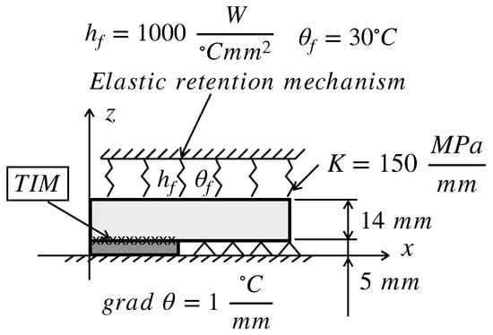 In this example, the problem shown in Figure 6b is solved. The aim is to propose different improvements in the elastic boundary conditions to the heatsink and package assembly in order to improve the thermomechanical behavior of the packaging.