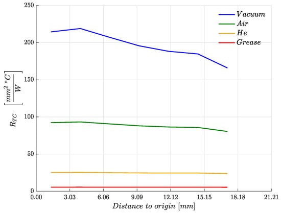 Complete thermal contact resistance ( [°Cmm2/W]) comparison at the potential contact zone.