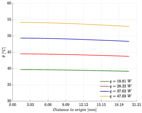 Temperature ( [°C]) distribution on the boundary of the microelectronic packaging for MPa.