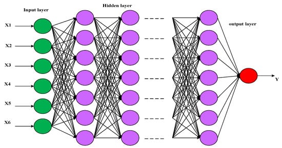 where σ(z) denotes activation function, indicates the output of q neuron in the n + 1 layer, represent the weight among n layer’s i neuron and n + 1 layer q neuron signifies the bias of linear relationships. In the repulsion process, errors among the computed coefficient and the actual values are measured by the loss function. The variables of b and ω are resolved by a small value of the loss function. The loss function of improved DNN is stated as: