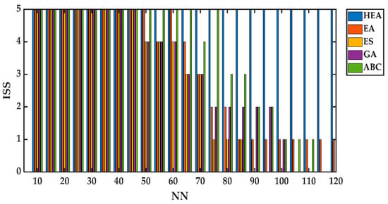In DHNN, the solution string is represented in bipolar form. This solution string is stored as an associative memory system known as Content Addressable Memory (CAM). Each solution string from the learning phase will span the initial bipolar vector and become the root of the storage. After satisfying Equations (18) and (19), the solution strings are chosen. These solution strings are known as Ideal Solution Strings (ISS). Notably, if the mechanism of an algorithm fails to achieve ideal strings, a further trial will occur from the highest fitness string reservoir. Since DHNN suffers from limited storage capacity, enhancing the storage capacity of DHNN is the real focus of our proposed HEA. Here the arrangements of Ideal strings are shown below: