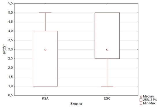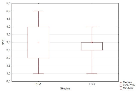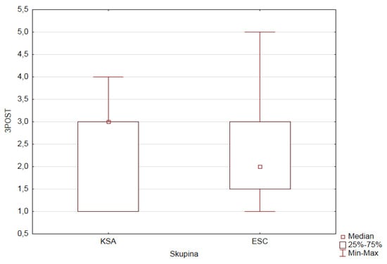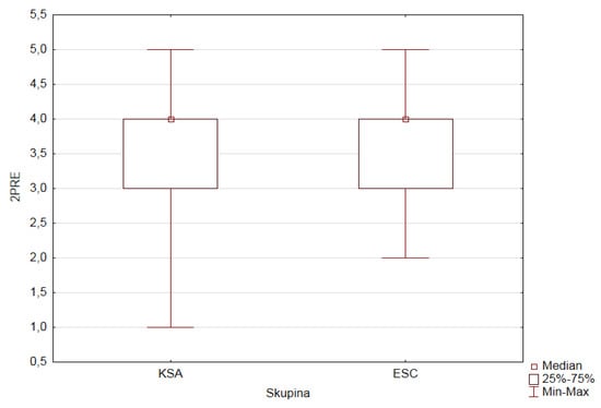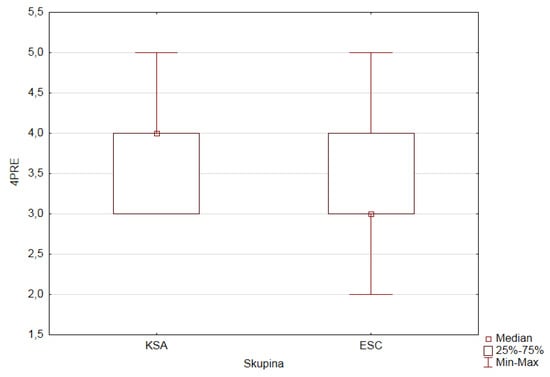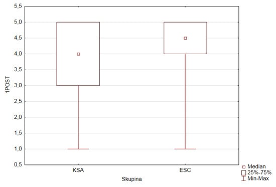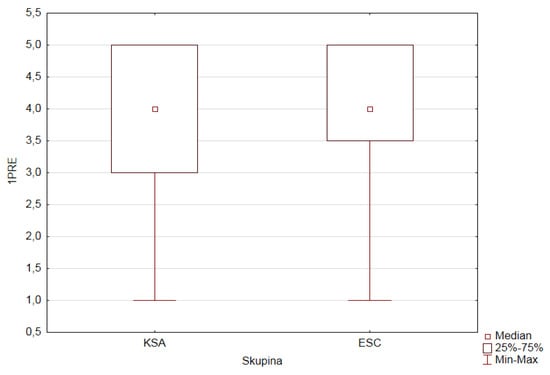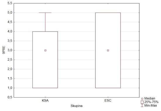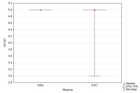 We checked normality for the depending ordinal variables (1PRE–5PRE, 9PRE, and 1POST–5POST, 9POST) in both research groups of pupils according to the value (category) of the factor GROUP (ESC, KSA). The observed variables do not have a normal distribution.