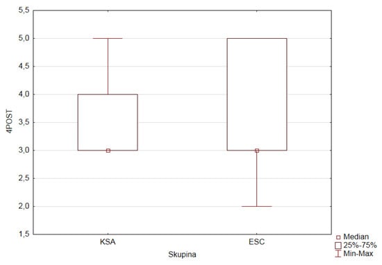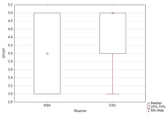 The data obtained for each of the questionnaire items within the pretest and posttest were processed depending on the level of the GROUP factor (experimental—ESC, control—KSA). We analyzed the final research data using statistical processing within the Mann–Whitney U test, chi-squared test of independence, Levene non-parametric test, and their graphical visualization. The use of these methods was preceded by the verification of their use, (e.g., verification of the normal distribution of the dependent variable in each group, equality of variances, and expected frequencies for the chi-squared test).