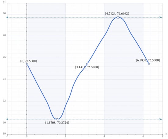 The sequence can be derived through the sequence and Equation (10). Applying cubic the spline interpolation method, a sequence can be acquired, which corresponds to the sequence in uniformly equal steps. Then, the sequence can be obtained by the trajectory function , which gives a set of parametric equations: