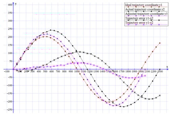 | No. | Independent Variable Coordinate x | Ideal Trajectory Coordinate y1 | Adjusted Trajectory Coordinate y3 | Trajectory Error y1 − y3 |