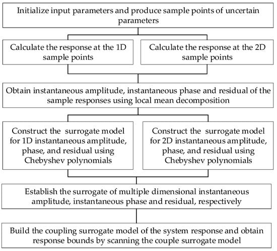 - Establish the coupling surrogate model for the mono-component response and add the mono-component’s surrogate and the residual surrogate to establish the entire surrogate model of the system response using Equation (32).