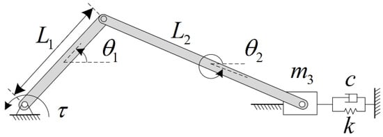 A double pendulum was employed in this subsection to propagate the interval uncertainty. A schematic of the double pendulum is shown in Figure 11, and the nominal values of the parameters are shown in Table 2. The initial configuration of the double pendulum is defined by .