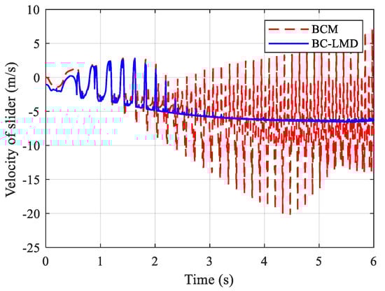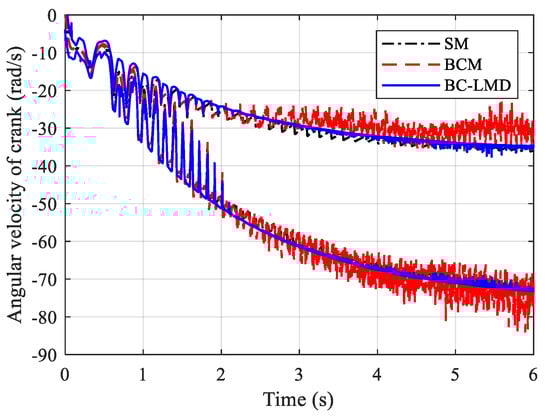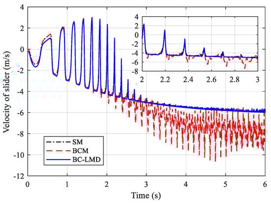 Figure 6 illustrates the lower bound of the velocity of the slider acquired by different methods. It can be found that the bound obtained by the BCM deteriorated more and more intensively after t = 2 s. By contrast, the BC-LMD can provide a relatively tight envelope with the increase of time history. Furthermore, there was a slight deviation in the bound resulting from the BC-LMD compared with SM at the initial moment, which was caused by the end effect of LMD.
