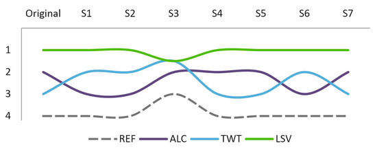 Table 4 presents the evaluation results of the seven impact categories provided by the one-dimensional sustainability assessment through the different life cycle assessments (LCCA, LCA, and SLCA) for each design option. These values will serve as a baseline decision matrix to apply the different combinations of multi-criteria techniques proposed and obtain a holistic sustainability ranking of the alternatives from a three-dimensional perspective.