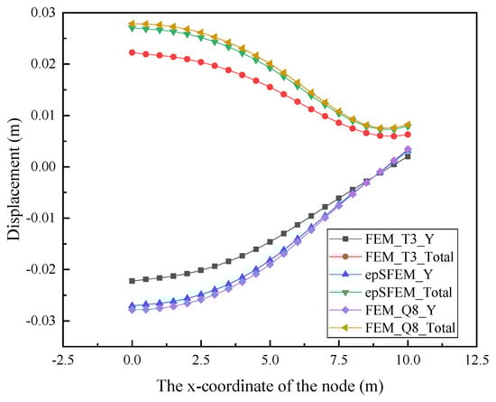 In the ES-FEM, the application process of displacement boundary conditions is similar to that of the FEM because the shape function used in the S-FEM has the same delta property as the FEM. The main methods include the direct method, set “1”, multiple large numbers, Lagrange multiplier and penalty function. The force boundary conditions are added directly to the corresponding nodes.