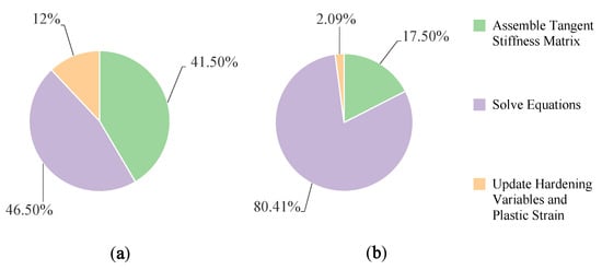 The proportion of time in each part of the epSFEM solver when calculating the model with 2.45 million elements using (a) the serial version of epSFEM and (b) the parallel version of epSFEM.