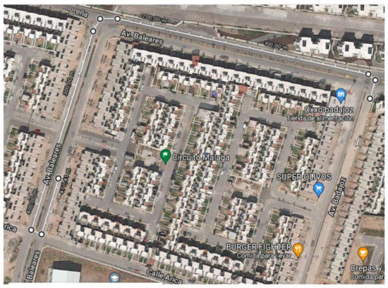 Route traveled (in white color). Source: https://www.google.com.mx/maps/@20.5515315,-100.7763127,176m/data=!3m1!1e3 (accessed on 28 January 2022). Map data © 2022 Google.