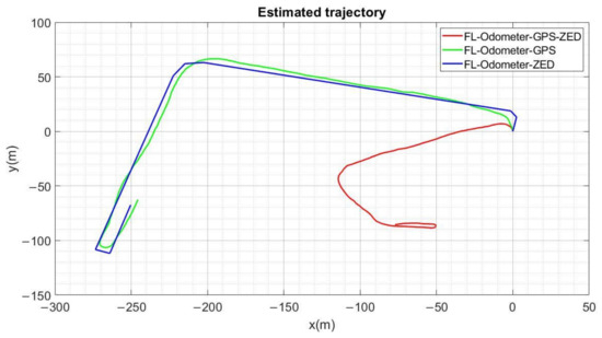 The limitation shown by this configuration is the fact that the ZED camera becomes confused when facing the sun, whereas the GPS sends a greater error when there are obstacles between the sensor and the sky. Furthermore, the odometer in the configuration does not provide information about the laps.