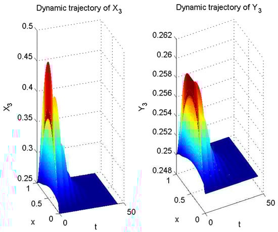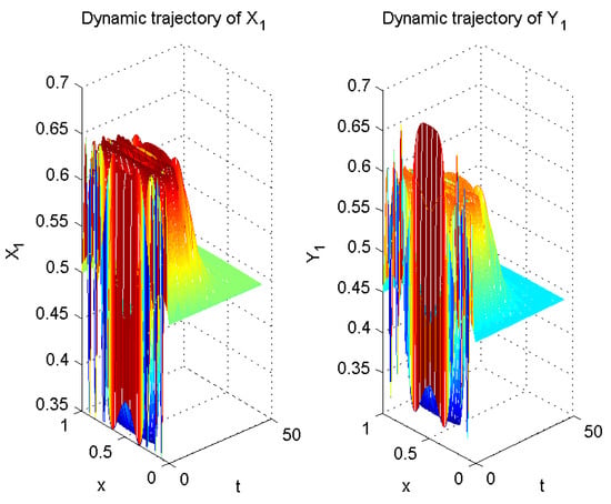 According to Theorem 1, system (3) and system (5) are synchronized (see Figure 1, Figure 2 and Figure 3).