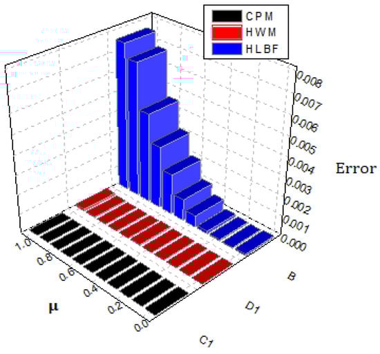 Comparison of proposed method solution with other method on error base for problem .