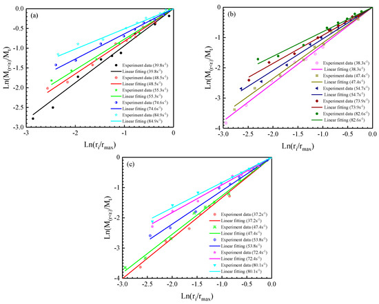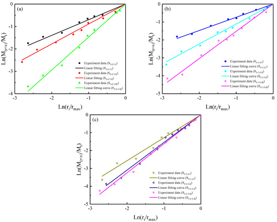 In the experimental data, the fractal dimension is seen to increase with strain rate. Linear fitting functions can describe the relationship between the strain rate and the fractal dimension of fragmentation products from cemented rock samples. As shown in Figure 19, the goodness of fit is relatively high for the three types of Talbot index, which suggests the validity of these linear fittings.