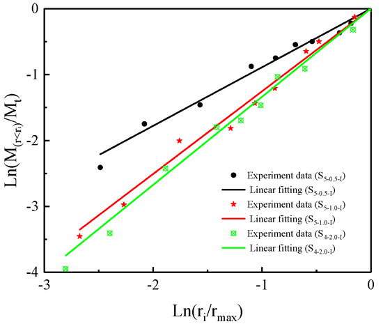 From Equation (5), the mass of rock fragments with sizes smaller than ri can be obtained as:
