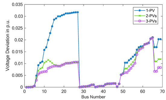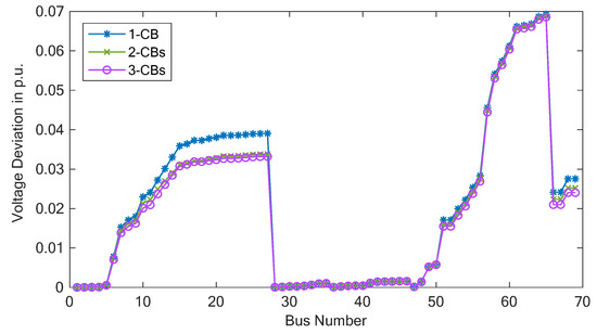 Bus voltage deviation after compensation on IEEE 69-bus RDS for scenario 2.