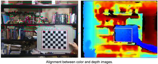 Both layers, color, and depth correspond in an overlapping area given rotation and translation matrices parameters. A factory camera calibration process generally provides these parameters as default values with brand new cameras. However, in some applications, factory parameters are not good enough. Furthermore, having different RGB-D cameras of the exact brand and models show different calibration errors of the same scene captured in their images with different precision and exactitude values. Agriculture [10], 3D reconstruction [11,12,13,14,15,16], 3D navigation [17,18,19,20], robotics [21], augmented reality (AR) [22,23,24], autonomous driving [25,26], object recognition [27,28,29], computer vision [30], are some research areas using data from these cameras. Considering the RGB-D camera’s available features and limitations, minimizing calibration error is an essential step for more delicate applications.