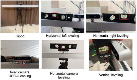 The camera calibration protocol requires setting up a tripod and an aluminum bar to stabilize and level the camera. Connect the USB C cable to the camera and adjust it to the correct position with a couple of nuts. Moreover, to settle the camera correctly, with the help of a bubble level, align horizontally using the aluminum bar, align vertically with the front of the camera. USB C cable connects the camera to the raspberry pi to see the scene and capture depth and color frame through realsense viewer GUI.