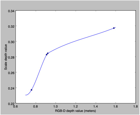 Our proposed method requires to use of a interpolation factor value to approximate the projection of 3D cloud points to a 2D image. We use a cubic spline regression in Figure 10 to interpolate depth error with the scale values produced by the QUEsT method [41].