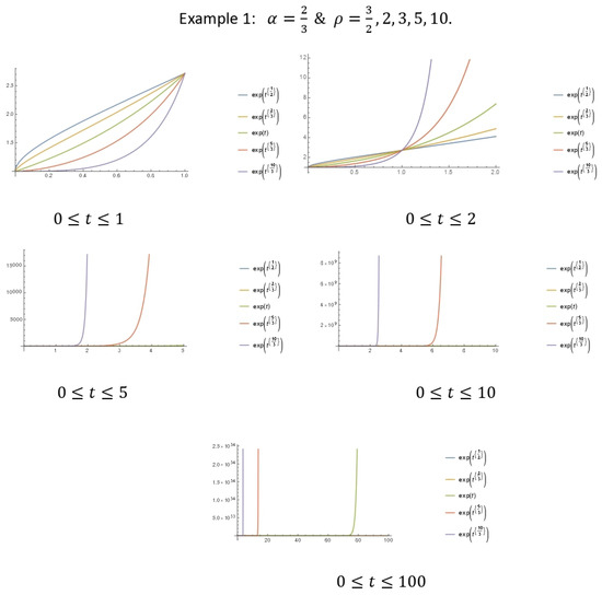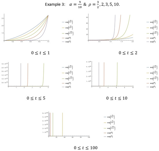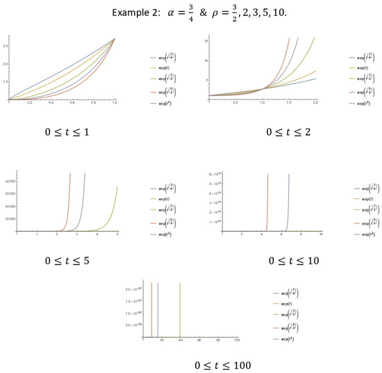 - Additionally, we give examples to illustrate the result in Theorem 5, which represent plots (graphs) for the upper bound growth of our energy solution. For convenience, we set the positive constants to be equal to one. That is, to havewhere and .