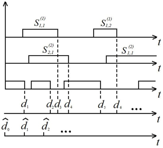 We assume that if the nth customer entering server j belongs to class i, then we assign the service time from the corresponding iid sequence initially intended for this class of customers, . (In other words, we omit the ‘intermediate’, not used, elements of this sequence.) Now, we consider the ‘minimal’ service times realized by all servers,