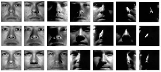 - Belhumeur, P.N.; Hespanha, J.P.; Kriengman, D.J. Eigenfaces vs. Fisherfaces: Recognition using class specific linear projection. IEEE Trans. Pattern Anal. Mach. Intell. 1997, 19, 711–720. [Google Scholar] [CrossRef] [Green Version]