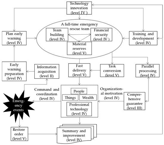 In recent years, several studies on the construction and management of full-time emergency rescue teams and the optimization of competency systems have emerged [4,5,6]. Scholars have been looking for new perspectives in the study and discussion of the organizational competency of full-time emergency rescue teams [7,8], including mine rescue [9], coal mine rescue [10,11] and emergency healthcare teams [12]. Other scholars have studied the organizational competency of emergency rescue teams in the face of highly uncertain, complex and dynamic crisis emergencies, by tracking and comparing the behaviors and characteristics of high-performance teams and low-performance teams during different stages of emergency management [13]. In the process of emergency rescue, the connection between each link and the deployment of various elements should be managed and promoted by full-time rescue teams, including the formulation, promotion and implementation of rescue plans and regulations, as well as the reasonable operation of rescue materials and information [14], covering all periods of rescue [15]. Therefore, the state needs to continuously improve emergency management forces at different levels, promote the adjustment of institutional functions, and strengthen the comprehensive coordination of emergency management [16]. Meanwhile, rescue teams need to select optimal rescue schemes according to the emergency rescue time [17], their own competency [17,18], available resources and other conditions [19,20]. Therefore, attention should be paid to the training of emergency personnel; at the same time, the emergency abilities and technical proficiency of all kinds of emergency personnel need to be further improved [21].