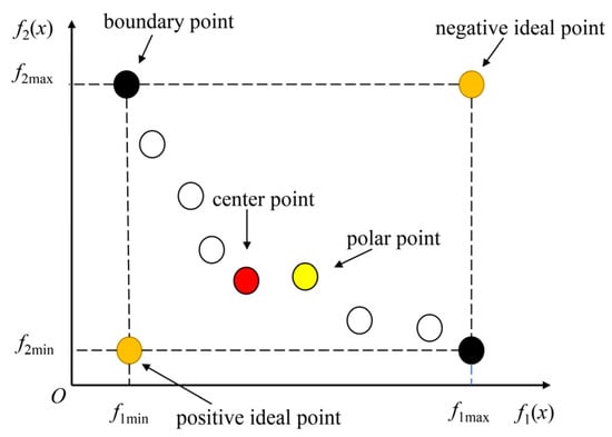 Many researchers have tried to identify special points on the POF that have considerable properties or represent local features of the POF. There are several types of points that have received more attention, including the center point, the boundary point, the ideal point, and the knee point. In this section, we mainly select three types of key points for the subsequent transfer and feed-forward prediction process, which are the center point, the boundary point, and the ideal point. The schematic diagram of the key points is shown in
