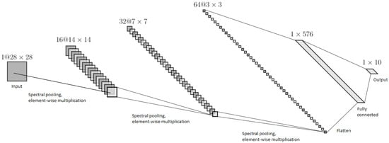 However, not only the operation of convolution can be simplified in the frequency domain, but the subsampling process may also change. In [23], the authors used the spectral pooling method instead of the conventional max-pooling as dimensionality reduction. This method is truncating the representation of the data in the frequency domain; thereby, it preserves more information per parameter and enables flexibility in output dimensionality. This spectral representation-based pooling method was applied in [24], where the training of FCNN architecture was conducted within the frequency domain without the addition of extra nonlinearity.