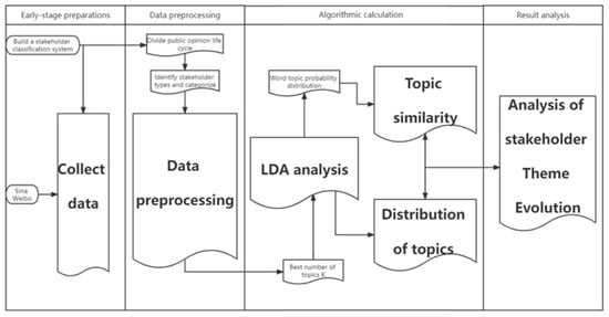 Hot social spot events refer to events that emerge at a specific time, attract wide public attention, and may have a significant impact on public security and social stability []. The public has paid great attention to hot social events. In the current social media environment, it is easier to engage in a heated discussion on hot social events. Institutions, organizations, and individuals express their views and opinions on the events, which become hot issues of the involved communicators, generating somewhat of a domino chain reaction. Hot social events generally carry a large amount of public opinion information, but due to the different identity backgrounds, personal positions, values, and education levels of communicators, a large number of differential expressions are inevitable, and the analysis of public opinion information therefore cannot be generalized.Some scholars have pointed out that in the new media environment, the circle of public opinion is more prominent, and stakeholders in each circle are gradually forming communities through the expression of views and mutual solidarity []. Moreover, due to the characteristics of dynamic development and change of social hot events, people pay attention to the different directions of social hot events over time, such as the immediate dynamics of social hot events, event stakeholders and their backgrounds, and post-event development, etc., []. Therefore, it is necessary to analyze the topic focus and evolution of different stakeholder groups under the public opinion field of hot social events: It is helpful for relevant management departments to accurately grasp the demands of various groups of people, so as to take more targeted response measures by stages and groups, and improve the efficiency of public opinion management.