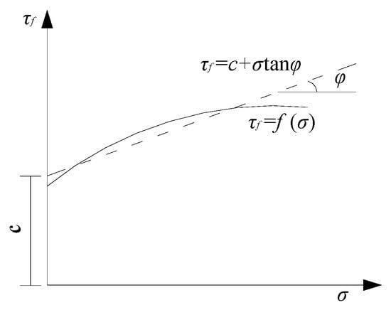 When a micro-unit is taken (Figure 6), the limit equilibrium condition of the material can be obtained (Equation (22) or Equation (23)).