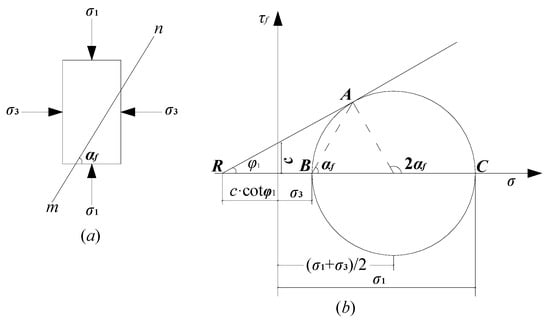 Mohr’s circle when any point of the material reaches equilibrium state (a) microelement, (b) Mohr’s circle.