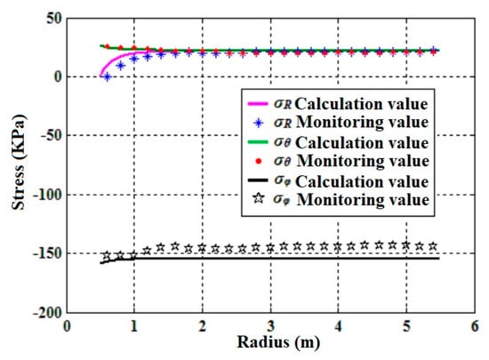 An accurate general solution of stress components is the precondition to obtaining the rational bearing capacity calculation formula. Figure 12 presents the general solution of stress components that could reflect the spatial distribution characteristic surrounding a Karst cave, but still, there is an error (the maximum value is not more than 5.0%). To improve the accuracy of the general solution, further research performed on these three aspects is needed: (1) increasing the type of displacement function component; (2) introducing various analysis methods; (3) using a non-linear constitutive model.