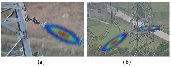 where represents the offset of a location i of object from the center point in the x and y direction, and are the learnable parameters of (K,2) and (K,2,2), K represents the category of dataset, represents the center offset of each kind of sample, and represents the importance of each location to the object; the bivariate Gaussian distribution can adjust size and angle of the distribution according to the object shape. Figure 5 shows the fitting effect of Gaussian function on the insulator surface. The bivariate Gaussian distribution can fit the center point and rotation angle of insulator by adjusting its own parameters. The univariate Gaussian distribution can only fit the shape of insulator by adjusting the center, length, and width of the distribution.