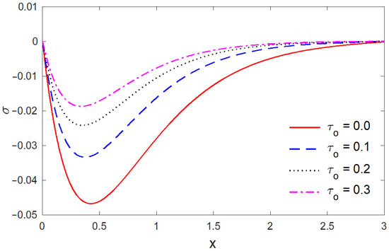 Here, are Lame’s constants, involves displacements, , is the temperature variations, is the reference temperature, is the time, is the thermal relaxation time, is the specific heat at constant strain, is the density of the material, is the coefficient of linear thermal expansion, are the stresses components, is the heat conductivity, and is the nonlocal parameter. Now, we consider a half-space () with the x-axis pointing into the medium. To simplify the analysis, a one-dimensional problem is considered. The components of displacement for a one-dimension medium are defined by the following.