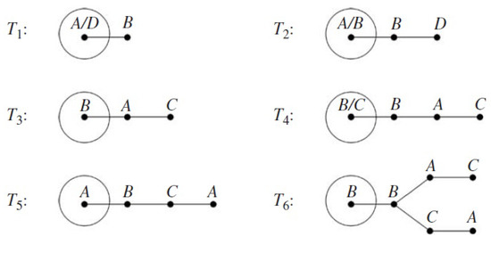 They defined the family of = ⋃ G, where G is the family of trees obtained by a path P = (u v) and a tree T ∈ F different to the path P, by adding an edge (u w), where w ∈ B(T) − H(T). G is the family of trees obtained by a tree T ∈ F different to the path P by adding a new vertex attached to any support vertex of T. G is the family of trees obtained by a path P and a tree T ∈ F∪ F different to P and P by adding an edge (x y), where x is any pendant vertex of P and y ∈ L(T) − X. G is the family of trees that are a subdivision graph of a caterpillar having three or four support vertices, and the remaining vertices of the caterpillar are pendant vertices. The family of can be constructed using one of the Operations 9–17 [17].