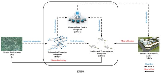 2], but also rapid post-disaster relief supplies and post-disaster recovery work, which led to the emergence of an EMDS. Due to the destruction of ground communication facilities, road traffic, and increased environmental hazards, the selection of vehicles in EMDS presents challenges. While the use of UAVs as vehicles in EMDS can weaken the impact of ground traffic on rescue work more than manned aircraft and unmanned vehicles and avoid the loss of rescue equipment and personnel, UAVs as temporary communication relay technology are also very mature, which can replace communication base stations to restore certain communication capabilities in disaster areas [