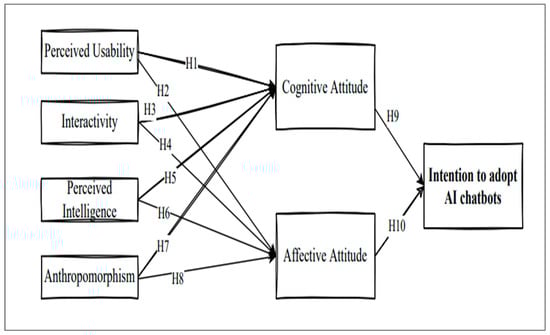 Anthropomorphism is closely related to human traits and behavior concerning non-human entities such as AI-chatbots and robots [67]. It strengthens consumers’ confidence and sense of stability, resulting in a more positive attitude [55,68]. The literature on anthropomorphism of AI-chatbots discusses how using AI-chatbots for small conversations and dialogues has increased users’ perceptions of chatbot trustworthiness, competence, and involvement [69]. Similarly, Araujo [70] reported that consumers’ impressions of engaging with other social entities favorably impacts their emotional attachment to a chatbot company. Research suggested that the anthropomorphic attributes of AI-chatbots are an important predictor of consumers’ attitudes [7,62,71]. Although no previous studies have looked into how anthropomorphic characteristics of AI-chatbots influence attitude dimensions, it is likely that human-like characteristics of chatbots are linked to both consumers’ cognitive and affective attitudes. Thus, we postulate the following hypotheses: