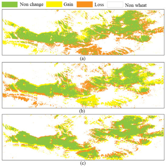 At the same time, it can be seen that the extraction accuracy and overall accuracy of winter wheat after fusion are relatively better than those before fusion, and the voting fusion process can fully consider the differences of different simultaneous image elements and will combine the extraction results of different images; therefore this method avoids the chance of single image and is more reasonable.