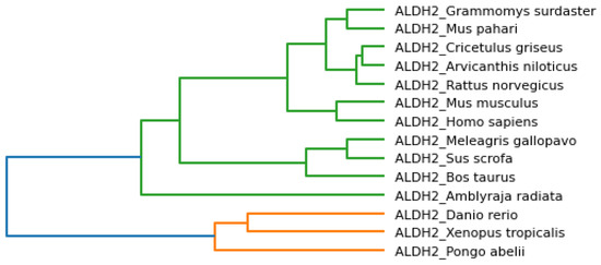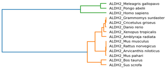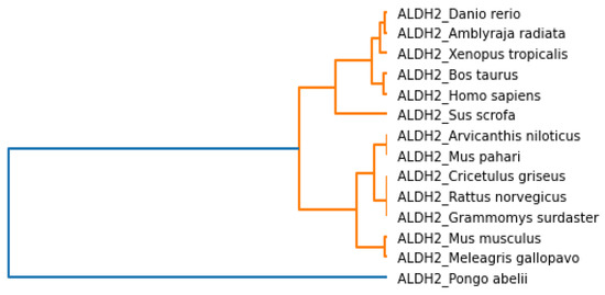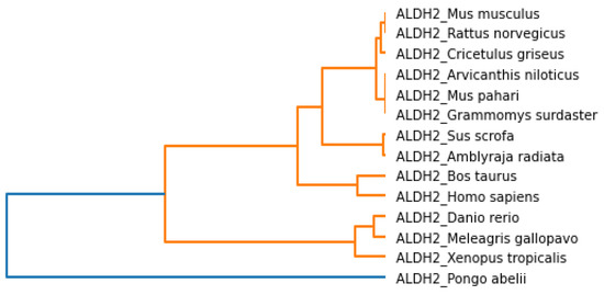 This paper comprehensively analyzed ALDH2 sequences of fourteen species, including Homo sapiens (human). The other species are Pongo abelii, Rattus norvegicus, Amblyraja radiata, Sus scrofa, Meleagris gallopavo, Xenopus tropicalis, Mus pahari, Arvicanthis niloticus, Cricetulus griseus, Danio rerio, Bos taurus, Grammomys surdaster, and Mus musculus.