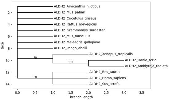 - Phylogenetic analysis of ALDH2 sequences of fourteen species.