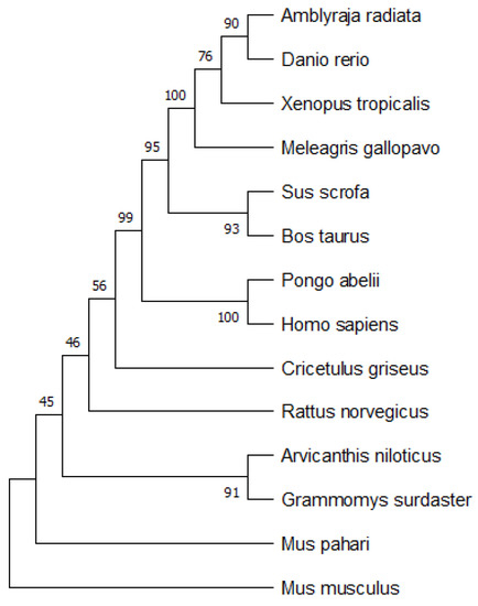 Phylogenetic trees represent evolutionary relations between species, and the associated clusters are shown in Figure 6. We observed that Danio rerio, Grammomys surdaster, Cricetulus griseus, Xenopus tropicalis, and Amblyraja radiata are closer based on the analysis of physicochemical properties. Mus musculus, Rattus norvegicus, Arvicanthis niloticus, and Mus pahari were grouped. It was a similar case for Meleagris gallopavo and Pongo abelii. Similarly, Bos taurus and Sus scrofa were placed nearby. Homo sapiens was placed separately but bore similarities to Pongo abelii and Meleagris gallopavo.