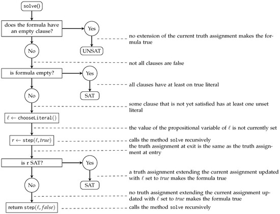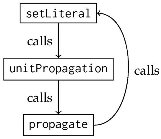 - Gomes, C.P.; Kautz, H.A.; Sabharwal, A.; Selman, B. Satisfiability Solvers. In Handbook of Knowledge Representation; van Harmelen, F., Lifschitz, V., Porter, B.W., Eds.; Elsevier: Amsterdam, The Netherlands, 2008; pp. 89–134. [Google Scholar] [CrossRef]