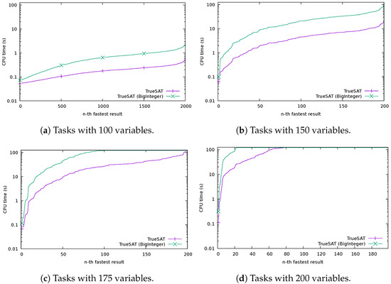 - Gomes, C.P.; Selman, B.; Crato, N.; Kautz, H.A. Heavy-Tailed Phenomena in Satisfiability and Constraint Satisfaction Problems. J. Autom. Reason. 2000, 24, 67–100. [Google Scholar] [CrossRef]