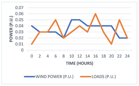 where is the voltage at the bus, and and are the maximum and minimum acceptable bus voltages, respectively. The nodes’ voltages should be kept within 0.9 and 1.05 p.u. limits, based on the ANSI C84.1 standard [26].
