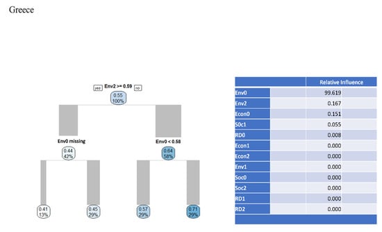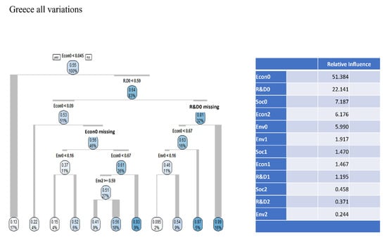 For that reason, the combination of DEA and ML has been gaining traction in the literature. For example, Samoikenko and Osei-Bryson [] combined DEA with clustering and Classification and Regression Trees (CART) to increase the discriminatory power of the method; Wu [] integrated DEA with data mining and CART to evaluate the efficiency of Brazilian companies. De Nicola et al. [] combined DEA with CART to evaluate the Italian health system. Nandy and Singh [] used DEA to evaluate the efficiency of farms in India and employed machine learning to gain insights into which variables are crucial in predicting performance. Aydin and Yurdakul [] separated countries in groups via clustering and then calculated the efficiency of how countries responded to COVID-19 in each cluster with DEA. Finally, Thaker et al. [] employed DEA to evaluate the efficiency of Indian banks and then used Random Forest Regression to analyze the impact of corporate governance (and other bank characteristics) on the calculated efficiencies. Consequently, combining DEA with ML offers an alternative approach to the issue of inputs and outputs selection.